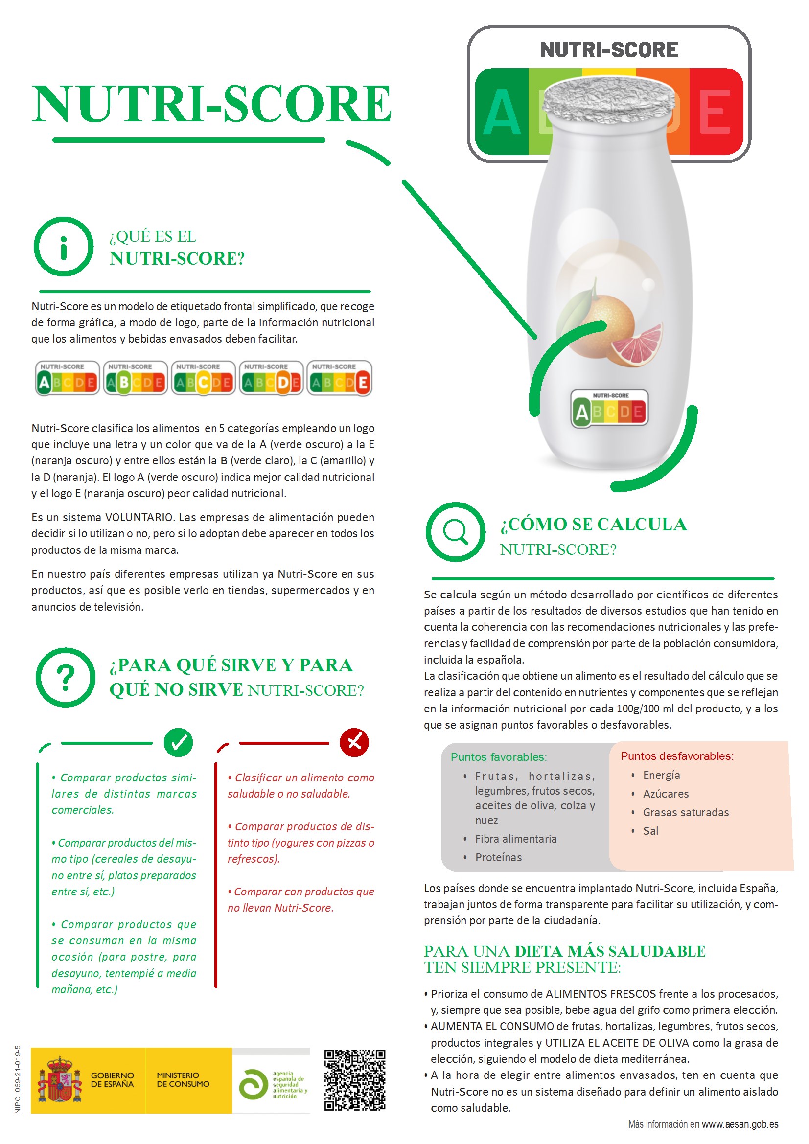 Acceder PDF Digital Tríptico: Comparando con Nutri-score es más fácil comer mejor Agencia Española de Seguridad Alimentaria y Nutrición (AESAN)